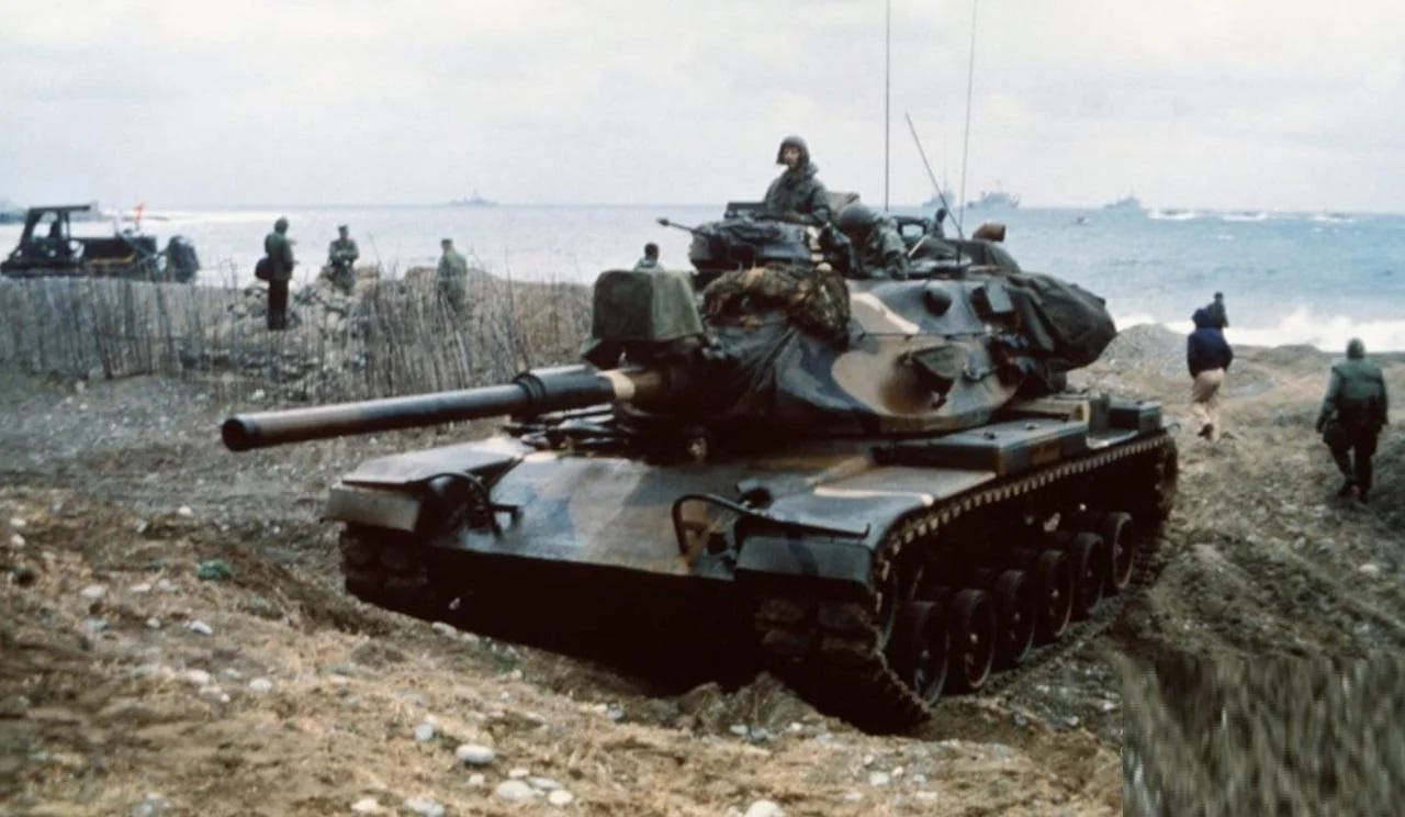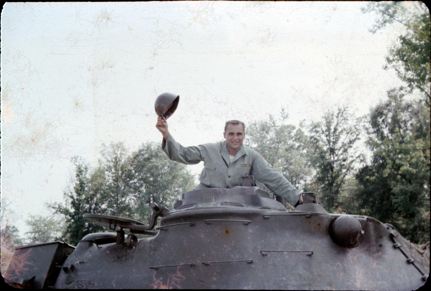 Sgt. Finlay Wood atop an M48 tank, a year prior to the Memphis crossing.