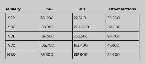 A chart from the time published for military intelligence breaks down the troop count in simple terms; The combat strength of the Socialist Rifle Corps (the elite branch of the main rebel bloc), the strength of Socialist Volunteer Brigades, and the strength of other various factions that had allied themselves with the Socialist States.