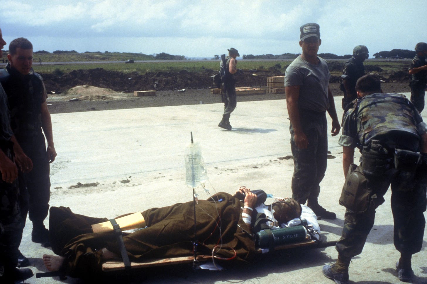 U.S military personnel waiting for medical evacuation helicopters on S.I.